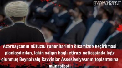 Qafqazagency.ir xəbər verir ki,Azərbaycan ruhanilərinin ölkəmizdə keçirilməsi planlaşdırılan, lakin xalqın haqlı etirazı nəticəsində ləğv olunmuş Beynəlxalq Ravvinlər Assosiasiyasının toplantısına münasibəti…