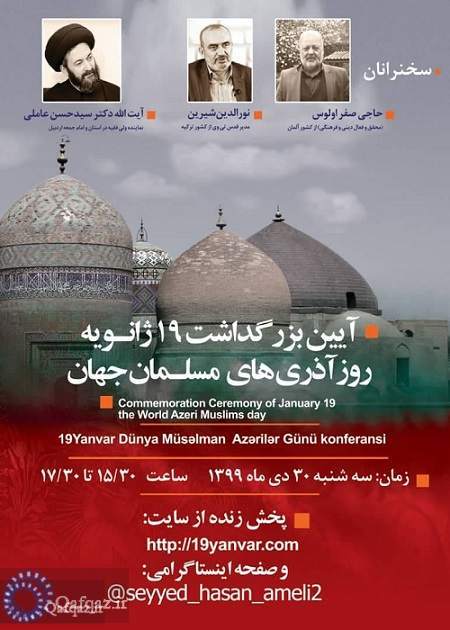 Qafqaz Həqiqətləri xəbər verir ki, “Dünya Müsəlman Azərbaycanlıları Günü”nün uca tutulması ilə bağlı tədbir sabah 19 yanvar Şeyx Səfiyəddin Ərdəbili türbəsində keçiriləcək.