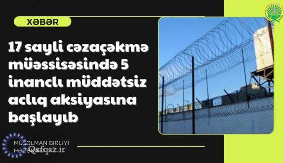 Qafqazagency.ir xəbər verir ki,Müddətsiz aclıq məhbuslar müəssisə rəhbəri Şəfaət Abbasovun həbsxanada məhbuslara süni maneələr yaradaraq onları qarşıdurmaya çəkmək cəhdinə etiraz olaraq başladılıb. Məhbuslar aylardır müəssisədə müxtəlif bəhanələrin uydurularaq inanclıları sıxışdırmasını onların inancına yönəli növbəti təxribatın icrası kimi dəyərləndirirlər.