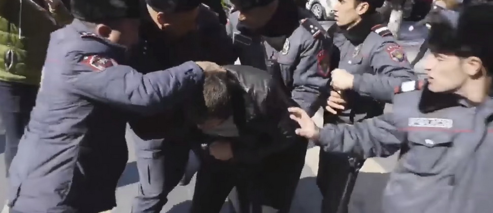 Məlumata görə, hökumət binası qarşısında üzərinə benzin tökərək özünü yandırmağa cəhd edən Andranik Adilxanyan polis əməkdaşları tərəfindən saxlanılıb.