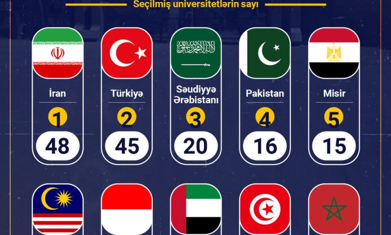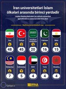 Qafqazagency.ir xəbər verir ki, Layden reytinqinə əsasən, İran bu reytinq sistemində 48 universitetlə təmsil olunaraq, əvvəlki illərdə olduğu kimi İslam ölkələri arasında universitetlərin sayına görə birinci yeri tutur. İrandan sonra Türkiyə 45 universitetlə ikinci, Səudiyyə Ərəbistanı isə 20 universitetlə üçüncü pillədə qərarlaşıb.