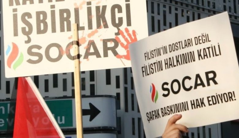 İstanbulda sionist İsrail rejiminin Fələstin xalqına qarşı qətliamından qəzəblənən eyni zamanda Türkiyə prezidentinin bu rejim ilə ticarət əlaqələrinin dayandırılmalı olduğuna dair bəyanatlarından təsirlənən gənclər, SOCAR-ın İstanbul ofisi qarşısına toplaşaraq cinayətkar rejimin enerji ilə təmin olunmasına öz etirazlarını bildirdilər.SOCAR bu etiraza cavab olaraq bir bəyanatda ümumiyyətlə bu şirkət tərəfindən İsrailə neft tədarükünü inkar etdi və Azərbaycan neftinin sadəcə təchizatçı şirkətlərə satıldığını bildirdi:“