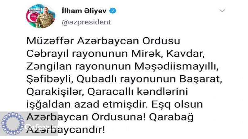 İran mətbuatı Prezident İlham Əliyevin Ağdamın azad olunması ilə əlaqədar xalqa müraciətinə geniş yer ayırıb