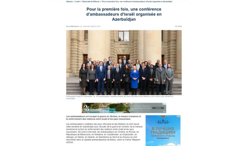 خبرگزاری رسمی آذرتاج جمهوری آذربایجان به نقل از سایت i24news رژیم صهیونیستی گزارش داد، در نشست اخیر سفرای رژیم صهیونیستی در منطقه اوراسیا که در باکو برگزار شد، طرح های اسراییل برای 2023 در خصوص وخامت میان ایران و اسراییل بررسی شده است.
