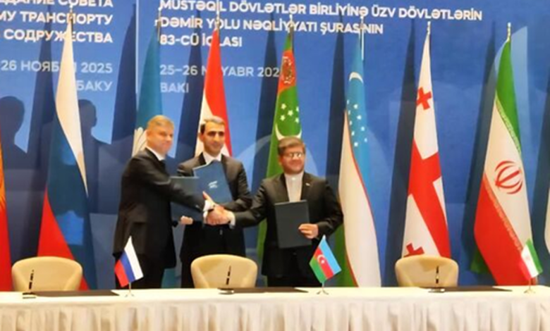 در اجلاس CIS در باکو، مدیران راهآهن ایران، روسیه و آذربایجان تفاهمنامهای راهبردی برای توسعه مسیر غربی کریدور شمال–جنوب امضا کردند.