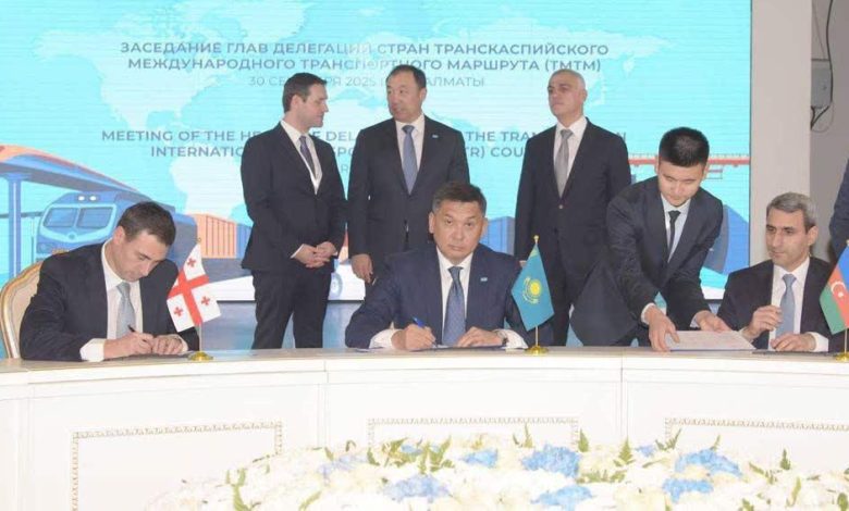 توافق سه‌جانبه برای تسریع ترانزیت در مسیر دالان میانی؛ آذربایجان، قزاقستان و گرجستان سند همکاری حمل‌ونقل امضا کردند