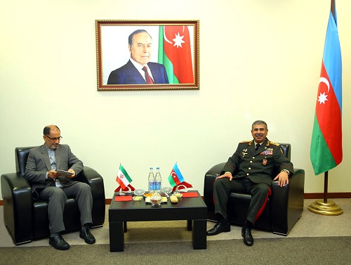 رضا مظفری نیا، معاون وزارت دفاع و پشتیبانی نیروهای مسلح جمهوری اسلامی ایران که برای حضور در نمایشگاه تسلیحاتی باکو به جمهوری آذربایجان سفر کرده است، با ژنرال ذاکر حسن اف، وزیر دفاع جمهوری آذربایجان دیدار کرد.