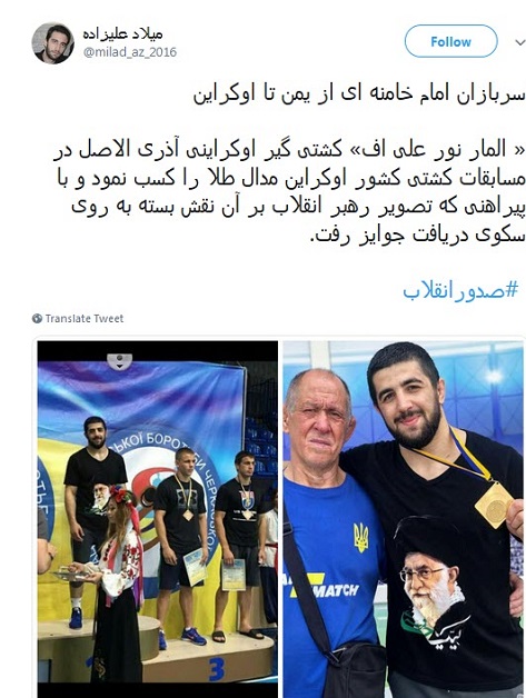 واکنش ها به انتشار تصاویر کشتی گیر آذری الاصل اوکراینی با پیراهن منقش به تصویر مقام معظم رهبری در فضای مجازی